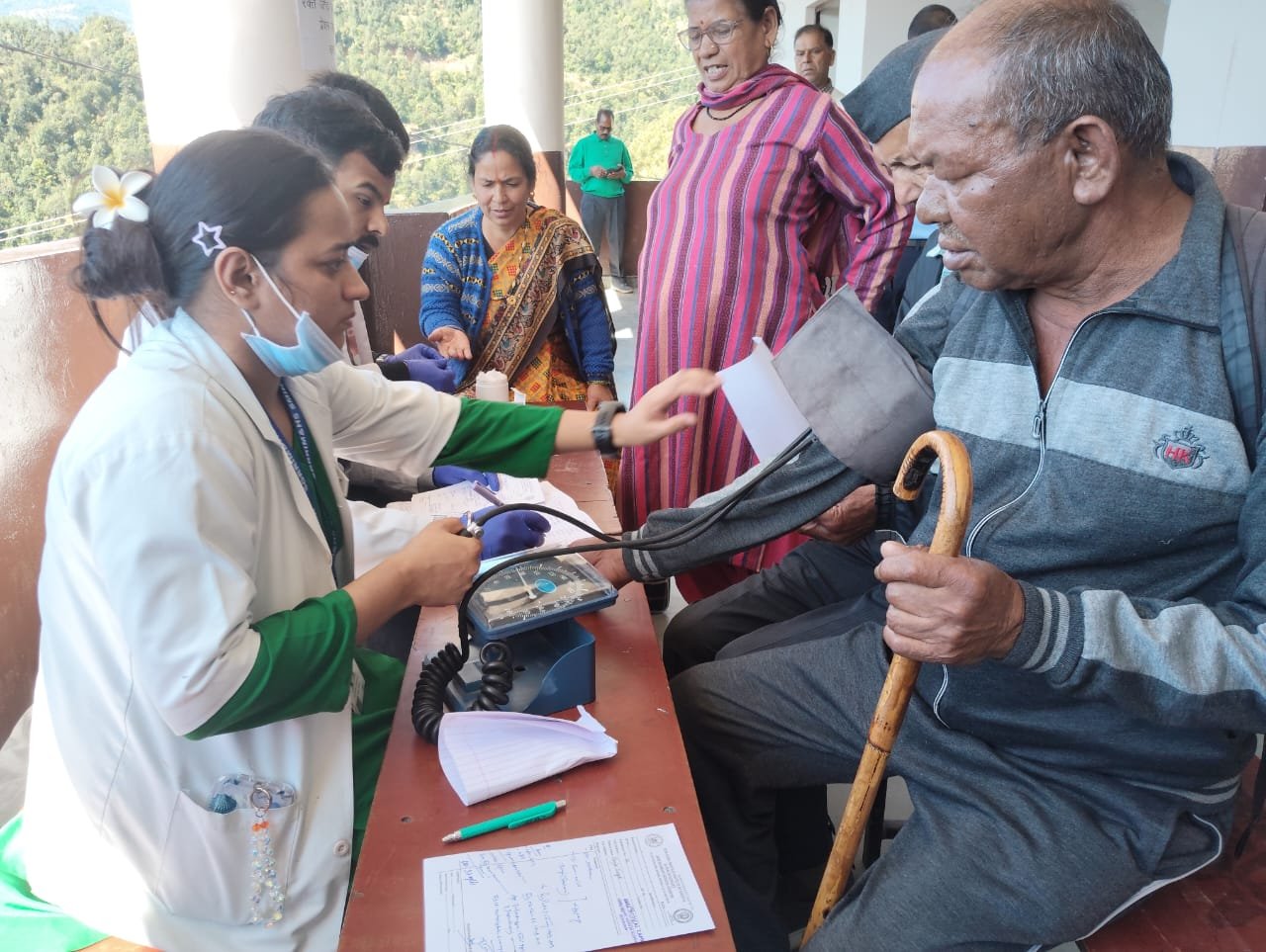 श्री महंत इन्दिरेश अस्पताल की ओर से रोगियों की निःशुल्क ई.सी.जी. जांच, ब्लड शुगर जांच एवं ब्लड प्रैशर जांच की गई। श्री महंत इन्दिरेश अस्पताल की ओर से रोगियों को निःशुल्क दवाईयों भी वितरित की गईं। इस अवसर पर पान सिंह नेगी पूर्व प्रधान संघ अद्यक्ष, दान सिंह नेगी ब्लॉक अद्यक्ष कांग्रेस गैरसैंण,पृथ्वी सिंह बिष्ट सांसद प्रतिनिधि मनीष गौड़, महावीर कंडारी, माहन पंत, संदीप सिंह, सतेन्द्र रावत (शंख नाद Let’s) समस्त सभासदगण, नगर पंचायत गैरसैंण गंगा सिंह पंवार, पूर्व नगर पंचायत अद्यक्ष,उपस्थित रहे।