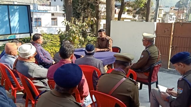 सतपुली । अपर पुलिस अधीक्षक कोटद्वार शेखर सुयाल ने सोमवार को सतपुली थाने का निरीक्षण किया । वहीं इस दौरान सीएलजी मेंबरों, व्यापार मंडल अधिकारियों, टेक्सी समिति और गणमान्य व्यक्तियों संग भी बैठक की गई l सतपुली थाने में अर्द्धवार्षिक निरिक्षण के दौरान सतपुली पहुंचे अपर पुलिस अधीक्षक शेखर सुयाल ने थाने का निरीक्षण किया इस दौरान उन्होंने अस्त्र शस्त्रों की जानकारी ली वहीं उन्होंने पुराने हो चुके हथियारों को जल्द जमा किए जाने की बात कही । निरिक्षण के बाद थाना सतपुली में सीएलजी मेंबरों, व्यापार मंडल अधिकारियों, टेक्सी समिति और गणमान्य व्यक्तियों संग बैठक की । बैठक में नशे, साइबर क्राइम सहित आवारा गौवंशों सहित विभिन्न विषयों पर चर्चा की गई । इस दौरान थानाध्यक्ष लाखन सिंह, स्वच्छता ब्रांड एम्बेसडर प्रेम सिंह रावत, बृजमोहन सिंह रावत, व्यापार मंडल अध्यक्ष जयदीप नेगी, कोषाध्यक्ष सुनिल डंडरियाल, रामानंद मित्तल, पुष्पेन्द्र राणा, प्रवीन सिंह, गुमान सिंह, मो हनीफ सहित पुलिस कर्मी व अनेक लोग मौजूद रहे ।