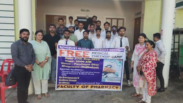 भगवंत ग्लोबल विश्वविद्यालय ने भागूवाला में लगाया निःशुल्क स्वास्थ्य जांच शिविर, 150 से अधिक मरीजों का हुआ इलाज