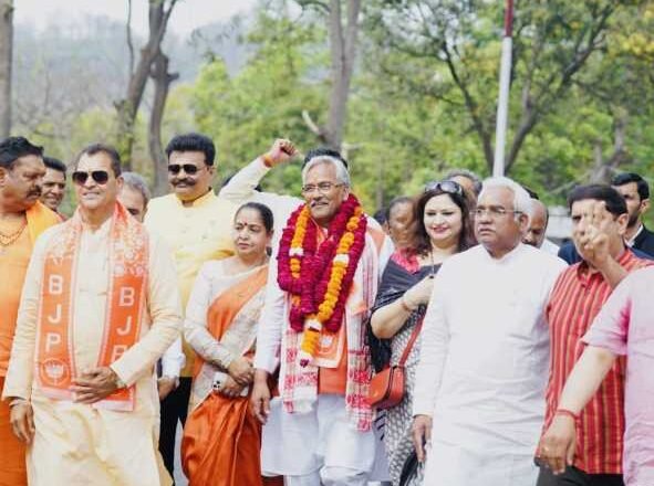 हरिद्वार: हरिद्वार लोकसभा सीट से भाजपा प्रत्याशी और पूर्व मुख्यमंत्री त्रिवेंद्र सिंह रावत ने मंगलवार को यहां रोशनाबाद कलेक्ट्रेट में पहुंच कर ऑफलाइन नामांकन भी कर दिया। इससे पहले, रावत ने प्रधानमंत्री नरेंद्र मोदी के डिजिटल इंडिया के नारे 22 मार्च को ऑनलाइन नामांकन भी किया था। आज सुबह हर की पैड़ी ब्रह्मकुंड पहुंच कर त्रिवेंद्र सिंह रावत ने सबसे पहले परिवार सहित मां गंगा का पूजन किया और आशीर्वाद लिया। इसके बाद, उन्होंने भाजपा के चुनिंदा पदाधिकारियों और कार्यकर्ताओं के साथ रोशनाबाद कलेक्ट्रेट पहुंच कर सादगी से ऑफ लाइन नामांकन भी कर दिया। जिला निर्वाचन अधिकारी के समक्ष रावत ने चार सैट में नामांकन पत्र दाखिल किया। इससे पहले, 22 मार्च को ऑनलाइन नामांकन करने के बाद रावत ने कहा था कि उन्होंने प्रधानमंत्री नरेंद्र मोदी के डिजिटल इंडिया के नारे से प्रभावित होकर ऑनलाइन नामांकन किया। उन्होंने तब ये जानकारी भी दी थी कि 26 मार्च को सादगी के साथ ऑफलाइन नामांकन भी किया जाएगा। आज नामांकन के दौरान कैबिनेट मंत्री प्रेम चंद्र अग्रवाल, राज्य सभा सदस्य कल्पना सैनी, विधायक मदन कौशिक, बृजभूषण गैरोला, आदेश चौहान. प्रदीप बत्रा पूर्व विधायक सुरेश राठौड़, संजय गुप्ता, कुंवर प्रणव चैंपियन, स्वामी यतीस्वरानंद, वक्फ बोर्ड के अध्यक्ष सादाब शम्स, भाजपा नेत्री रानी देवयानी आदि प्रमुख रूप से मौजूद रहे।
