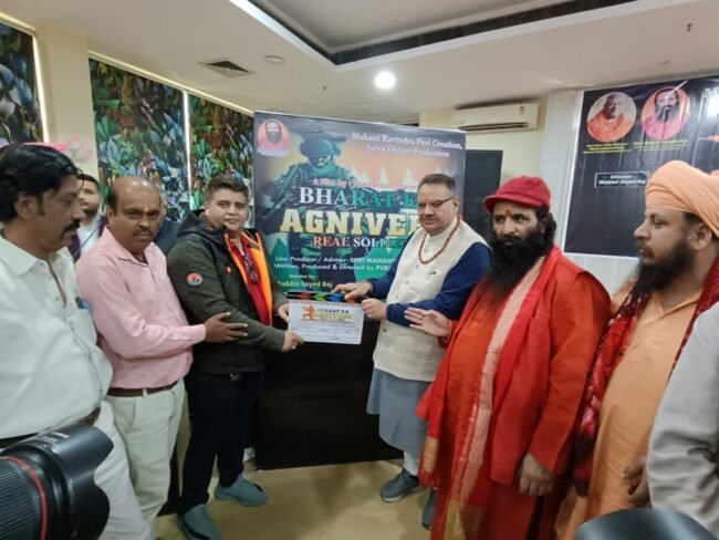 हरिद्वार : कृषि एवं कृषक कल्याण, सैनिक कल्याण एवं ग्राम्य विकास विभाग मंत्री गणेश जोशी एवं श्रीमंहन्त रविन्द्र पुरी चेयरमैन अखिल भारतीय आखाड़ा परिषद तथा मां मंशादेवी मन्दिर ट्रस्ट ने सोमवार को होटल गार्डेनिया, सिडकुल में महन्त रविन्द्रपुरी क्रियेशन सत्य ऑन लाइन प्रोडक्शन के बैनर तले अग्नि पथ योजना को दर्शाती बन रही फिल्म-’’भारत के अग्निवीर’’ के शुभ मुहूर्त शॉट एवं पोस्टर का मंत्रोच्चार के बीच दीप प्रज्ज्वलित कर अनावरण किया। कार्यक्रम को सम्बोधित करते हुये सैनिक कल्याण मंत्री गणेश जोशी ने निर्मित हो रही फिल्म ’भारत के अग्निवीर’’ के लिये श्रीमंहन्त रविन्द्र पुरी को हार्दिक शुभकामनायें देते हुये कहा कि आप सन्त के रूप में विभिन्न क्षेत्रों में समाज की सेवा कर रहे हैं तथा अब फिल्म-’’भारत के अग्निवीर’’ को निर्मित करने में अपना मार्गदशन दे रहे हैं। उन्होंने कहा कि मुझे भरोसा है कि जब यह फिल्म बनकर तैयार हो जायेगी, तो इससे नौजवानों को प्रेरणा मिलेगी तथा नौजवानों का सेना में शामिल होने का रूझान और बढ़ेगा।