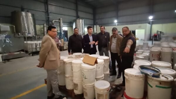 हरिद्वार : मुख्य विकास अधिकारी प्रतीक जैन ने लक्सर रोड स्थित पदार्था (गांव मुस्तफाबाद) के हनी प्रोसेसिंग यूनिट ’’ओनली एण्ड स्योरली आर्गेनिक(ओ0एस0ओ0) एग्रो प्रोडक्ट्स का विकासात्मक दृष्टि से दौरा किया। मुख्य विकास अधिकारी प्रतीक जैन को हनी प्रोसेसिंग यूनिट ’’ओनली एण्ड स्योरली आर्गेनिक(ओ0एस0ओ0) एग्रो प्रोडक्ट्स के एम0डी0 निर्मल वाष्र्णेय ने हनी प्रोसेसिंग यूनिट में विभिन्न क्षेत्रों से इकट्ठा करके कई ड्रमों में रखे हुये अलग-अलग किस्मों के शहद के सम्बन्ध में विस्तृत जानकारी दी। उन्होंने सबसे पहले बिजनौर से आये हुये शहद की विशेषताओं के सम्बन्ध में बताया। इसके बाद जैसे ही आगे बढ़े तो कुछ ड्रमों में राजस्थान से आया हुआ शहद रखा गया था, जिसके बारे में उन्होंने बताया कि यह हमने प्रोसेस करके रखा है, लेकिन फिर भी इसकी खासियत यह है कि यह जम जाता है। उन्होंने कहा कि यूकेलिप्टस एवं मस्टर्ड हनी कम जमता है। एग्रो प्रोडक्ट्स के एम0डी0 श्री निर्मल वाष्णेय ने एक-एक करके विभिन्न ड्रमों में रखे हुये लीची हनी, जामुन का शहद, मल्टी फ्लोर हनी, जो जिम कार्बेट कालाढूंगी से इकट्ठा करते हैं, धनिया का शहद, जो मध्य प्रदेश से आता है, खैर(कत्था) का हनी, बबूल हनी आदि के सम्बन्ध में विस्तृत जानकारी दी।