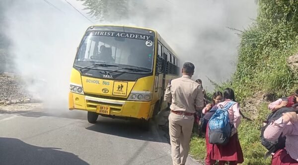 गोपेश्वर (चमोली)। मंगलवार क्राइस्ट एकेडमी की स्कूल बस जब स्कूल की छूट्टी के बाद बच्चों को लेकर गोपेश्वर की ओर आ रही थी, अचानक स्कूल बस में आग लगने से धुंआ निकलने लगा। और बस में सवार बच्चे चीखने चिल्लाने लगे। इसी बीच यहां से गुजर रहे पुलिस उपाधीक्षक कर्णप्रयाग ने मौके पर पहुंचकर बच्चों को सकुशल बाहर निकाला।
