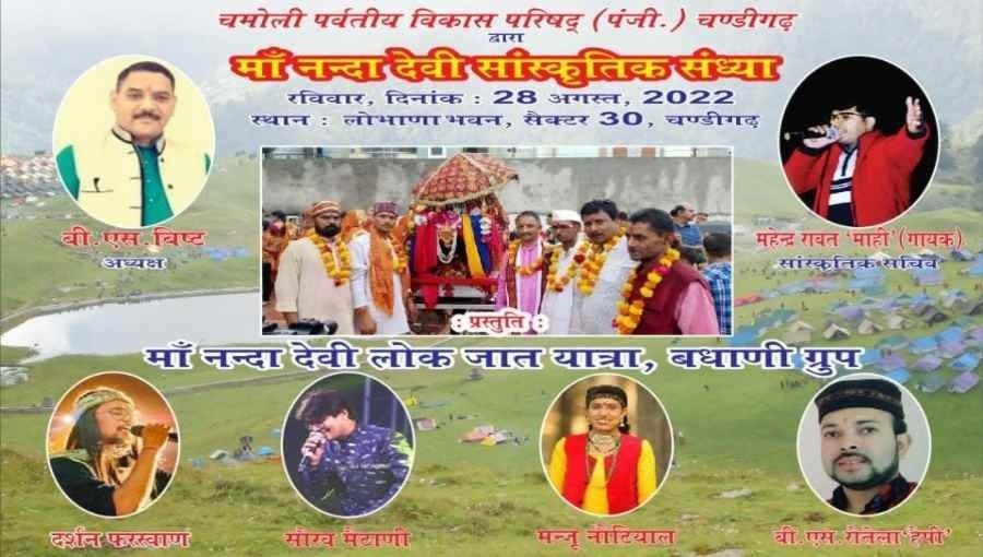 चंडीगढ़: चमोली पर्वतीय विकास परिषद (रजिस्टर्ड 1972) चंडीगढ़ के तत्वाधान में ‘मां नंदा देवी सांकृतिक संध्या’ कार्यक्रम का आयोजन किया जा रहा है। इस कार्यक्रम में सांकृतिक ग्रुप और लोक कलाकार अपनी प्रस्तुतियां देंगे। कार्यक्रम 28 अगस्त को आयोजित किया जा रहा है।