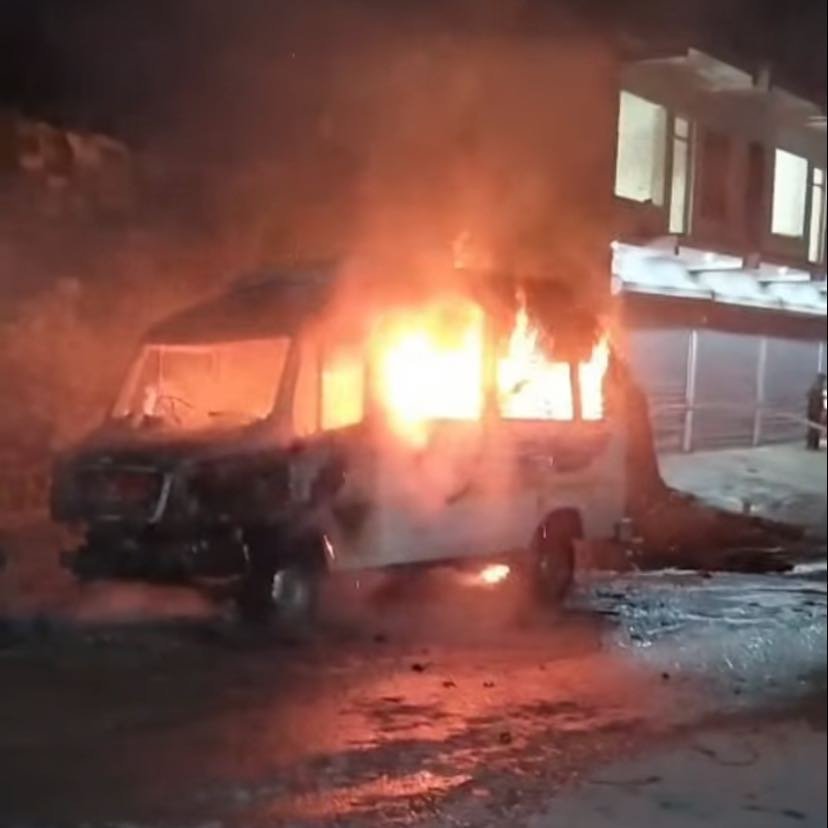 बदरीनाथ हाईवे पर खड़े दो वाहनों पर धधकी आग से मची अफरा तफरी