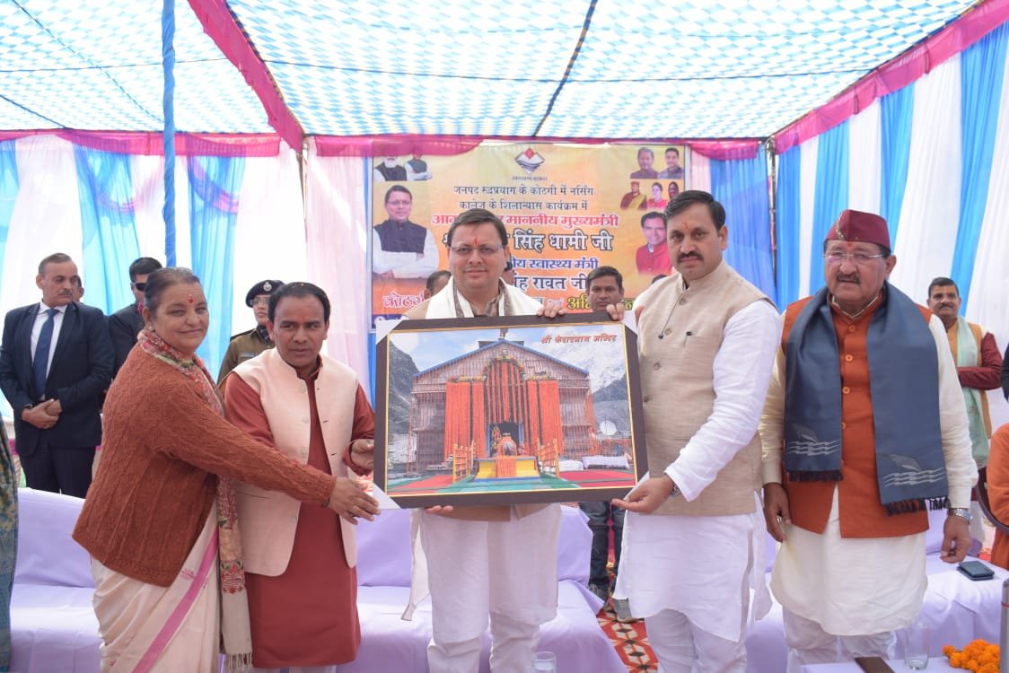 रूद्रप्रयाग/देहरादून : मुख्यमंत्री पुष्कर सिंह धामी ने सोमवार को 20 करोड़ 44 लाख 16 हजार की लागत से विकास खंड अगस्त्यमुनि के कोठगी में बनने वाले नर्सिंग कॉलेज का भूमि पूजन एवं शिलान्यास किया। इस दौरान कार्यक्रम में पहुंचे छात्र-छात्राओं को मुख्यमंत्री ने बाल दिवस की शुभकामनाएं दी। उन्होंने कहा कि हमारे नौनिहाल जीवन में जिस भी क्षेत्र में अपना करियर बनाना चाहते हैं, उस दिशा में पूरे मनोयोग से काम करें, परिश्रम करने वालों को सफलता अवश्य मिलती है। मुख्यमंत्री ने क्षेत्रीय जनता को संबोधित करते हुए कहा कि इस क्षेत्र में नर्सिंग कॉलेज के बनने से क्षेत्र के बच्चों को नर्सिंग की पढ़ाई में लाभ मिलेगा एवं उन्हें अन्यत्र नहीं जाना पड़ेगा। उन्होंने कहा कि अधिकारियों को नर्सिंग कॉलेज को निर्धारित समयावधि के अन्दर पूर्ण करने के निर्देश दिये गये हैं।