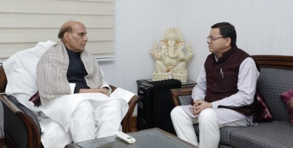 मुख्यमंत्री पुष्कर सिंह धामी ने केंद्रीय रक्षा मंत्री राजनाथ सिंह से की शिष्टाचार भेंट
