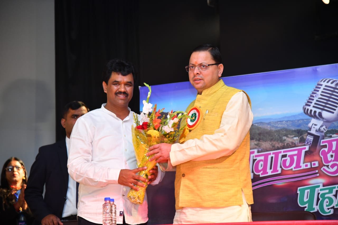 देहरादून : मुख्यमंत्री पुष्कर सिंह धामी ने गुरूवार को संस्कृति विभाग प्रेक्षागृह में शारदा स्वर संगम फिल्म प्रोडक्शन एवं हमरो पहाड़ उत्तराखंड सामाजिक संगठन द्वारा आयोजित ‘‘आवाज सुनो पहाड़ो की‘‘ कार्यक्रम में प्रतिभाग किया। कार्यक्रम के दौरान मुख्यमंत्री ने कहा कि इस कार्यक्रम के माध्यम से उत्तराखंड के युवा उभरते कलाकारों की आवाज पूरे भारत में पहुंचेगी। आज के समय में हमारे उत्तराखंड के कलाकार अपनी कला के माध्यम से पूरे देश में अपनी अलग पहचान बना रहे हैं। उन्होंने कहा कि प्रतिभा किसी की मोहताज नहीं होती, लोगो की मेहनत और उसके प्रति ईमानदारी उन्हें सफलता की ओर ले जाती है। हम सब में प्रतिभा किसी न किसी रूप में होती है बस हमे उसे पहचान कर निखारने की आवश्यकता होती है ।