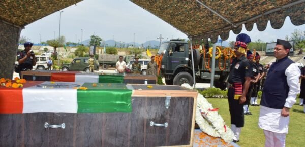 देहरादून : मुख्यमंत्री पुष्कर सिंह धामी ने जौलीग्रांट एयरपोर्ट, देहरादून पहुंचकर जम्मू कश्मीर में चल रहे ऑपरेशन त्रिनेत्र में शहीद हुए चमोली निवासी लांस नायक रुचिन सिंह रावत एवं सिरमौर, हिमाचल प्रदेश निवासी शहीद प्रमोद नेगी के पार्थिव शरीर पर पुष्पचक्र अर्पित कर उन्हें श्रद्धांजलि अर्पित की। मुख्यमंत्री पुष्कर सिंह धामी ने कहा कि राष्ट्रीय सुरक्षा में अपने प्राण न्योछावर करने वाले हमारे शहीदों को यह देश हमेशा याद रखेगा। राज्य सरकार हर पल सैनिक परिवारों के साथ खड़ी है। उन्होंने कहा हमारी सरकार शहीद रुचिन सिंह रावत के परिजनों की हर संभव मदद करेगी। उन्होंने परिजनों से इस दुख की घड़ी में धैर्य बनाए रखने की अपील की। इस दौरान कैबिनेट मंत्री गणेश जोशी, विधायक बृजभूषण गैरोला, वरिष्ठ पुलिस अधीक्षक देहरादून दिलीप कुंवर एवं अन्य लोग मौजूद रहे।