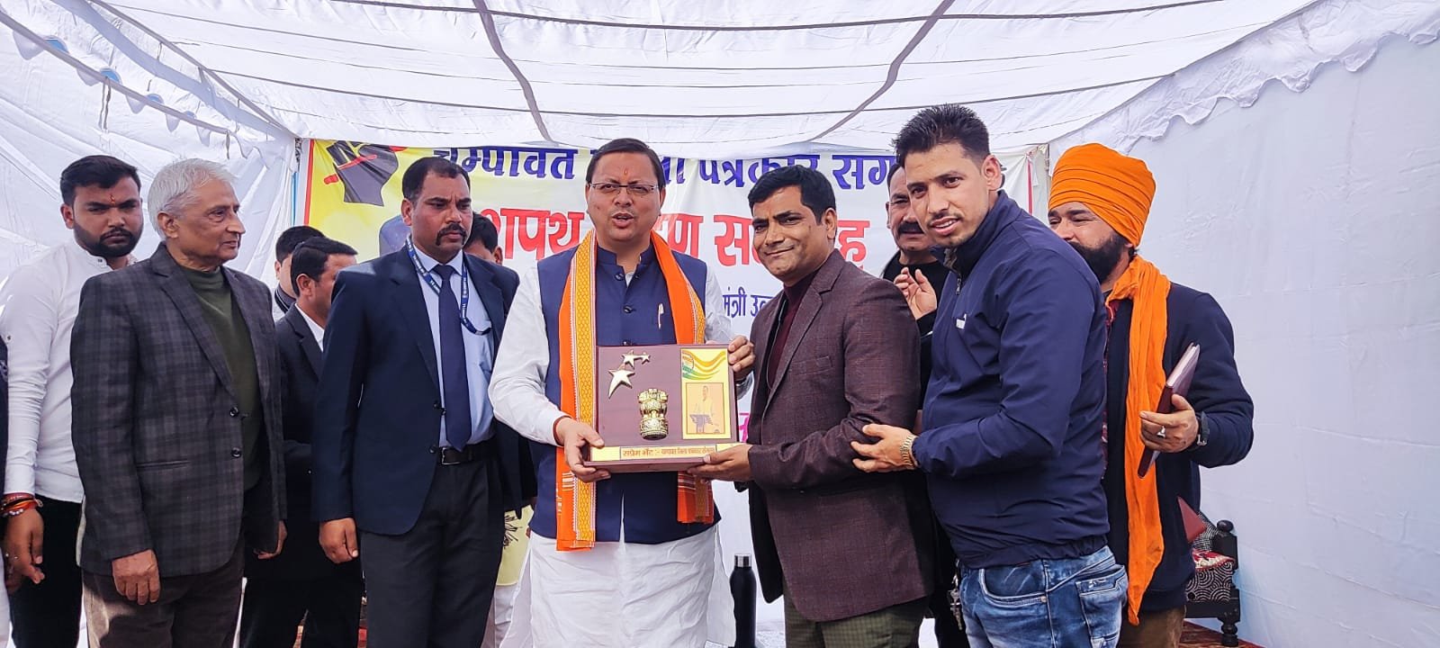 मुख्यमंत्री ने कहा कि कलम की ताकत हमेशा क्रांति लाई है और समाज व देश को आगे बढ़ाने का काम किया है, लोगों के अंदर राष्ट्र की भावना जागृत करने और उन्हें आगे बढ़ने के लिए प्रेरित किया है। हमारा संकल्प वर्ष 2025 तक उत्तराखंड को देश का सर्वश्रेष्ठ राज्य बनाने का है। उन्होंने आशा व्यक्त की कि इसमें मीडिया अपनी महत्वपूर्ण भूमिका निभाएगी। उन्होंने जनपद के पत्रकारों के अनुरोध को स्वीकारते हुए कहा कि पत्रकारों की सुविधा के लिए चंपावत मुख्यालय में प्रेस क्लब बनाने के लिए प्रस्ताव बनाया जाएगा। साथ ही पत्रकारों की सुविधा के लिए जो भी आवश्यक कार्य होंगे किए जायेंगे। इस अवसर पर जिला पंचायत अध्यक्ष ज्योति राय, नगरपालिका अध्यक्ष चंपावत विजय वर्मा, टनकपुर विपिन कुमार, लोहाघाट गोविंद वर्मा, ब्लाक प्रमुख चंपावत रेखा देवी, बाराकोट विनीता फर्त्याल, पाटी सुमंलता, ज्येष्ठ प्रमुख मोनिका बोहरा, भाजपा प्रदेश मंत्री हेमा जोशी, भाजपा जिलाध्यक्ष निर्मल महरा, पूर्व नगर पालिका अध्यक्ष प्रकाश तिवारी, हरगोविंद बोहरा, गोविंद सामंत एवं पत्रकारगण उपस्थित रहे।