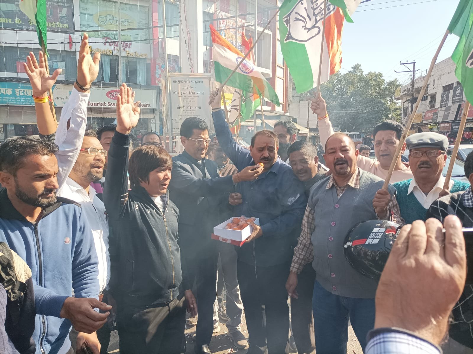कोटद्वार। महानगर काग्रेस कमेटी के अध्यक्ष संजय मित्तल और कार्यकारी जिलाध्यक्ष महावीर सिंह रावत के नेतृत्व में कोटद्वार महानगर कांग्रेस कमेटी और जिला काग्रेस कमेटी जनों ने हिमाचल प्रदेश में मिली जीत पर झण्डाचौक पर जमकर आतिशबाजी की । इस दौरान एक-दूसरे को मिठाई खिलाकर जीत की बधाई दी और हिमाचल की जनता को धन्यवाद दिया। इस दौरान काग्रेंस पार्टी के प्रदेश उपाध्यक्ष सूर्यकान्त धस्माना भी शामिल हुए और खुशी का इजहार किया, उन्होंने कहा कि हिमाचल प्रदेश की जनता ने भाजपा को नकार दिया, हिमाचल में परिवर्तन हुआ है और लोगों ने कांग्रेस पर विश्वास किया है ।