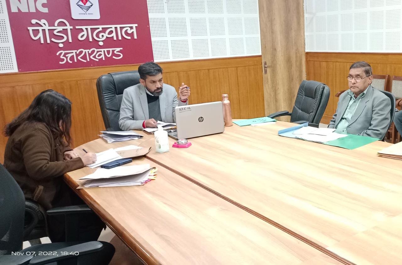 पौड़ी : उत्तराखंड लोक सेवा आयोग द्वारा आगामी 18 दिसंबर आयोजित की जा रही समूह ‘ग’ की प्रतियोगी परीक्षाओं की तैयारियों को लेकर जिलाधिकारी डॉ आशीष चौहान ने जिला सूचना विज्ञान केंद्र से वी०सी० के माध्यम से संबंधित रेखीय विभागों की बैठक ली। उत्तराखंड लोक सेवा आयोग द्वारा आयोजित  समूह ‘ग’ की प्रतियोगी परीक्षाओं को सफलतापूर्वक संपादित करने के लिए जिलाधिकारी ने संबंधित उप जिलाधिकारियों को निर्देश दिए कि परीक्षा केंद्रों का निरीक्षण करते हुए प्राथमिकता के आधार पर इन केंद्रों की स्थिति की रिपोर्ट उपलब्ध कराना सुनिश्चित करें।