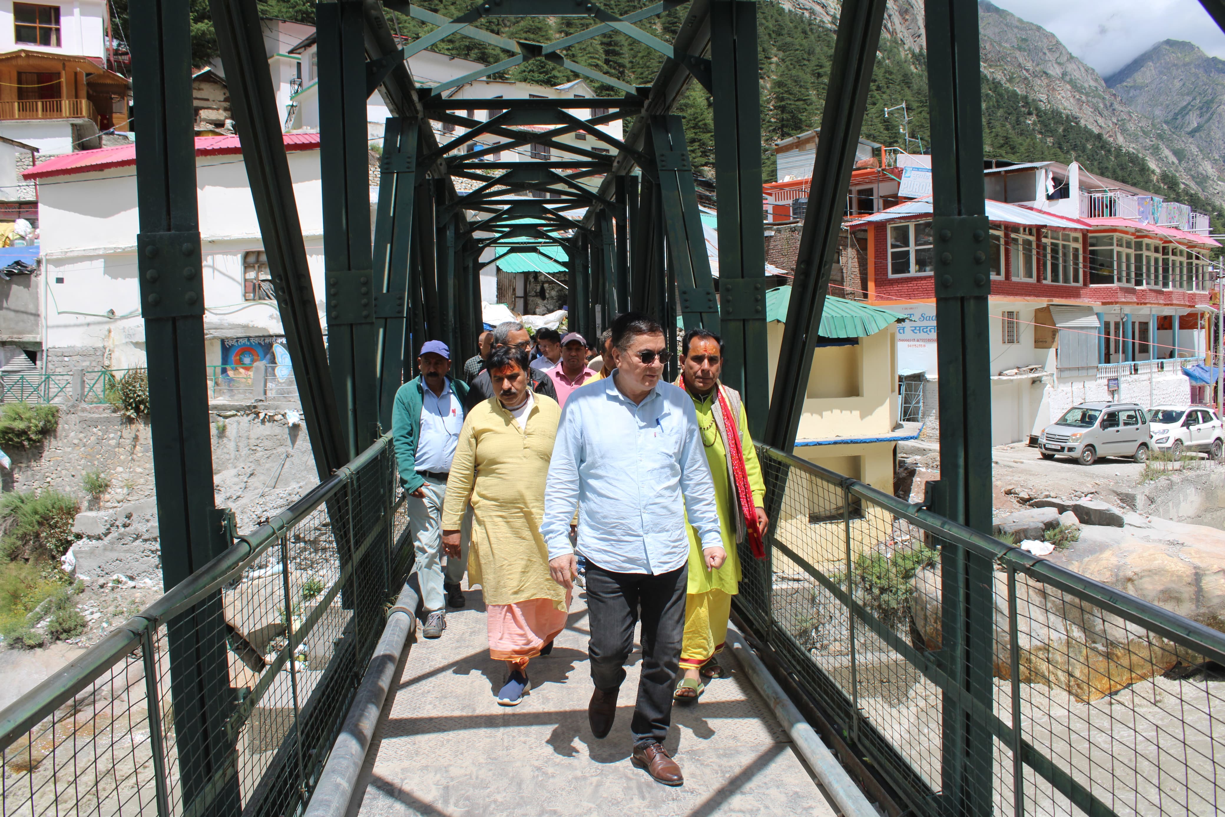 गंगोत्री धाम के भ्रमण के दौरान जिलाधिकारी डॉ. मेहरबान सिंह बिष्ट ने गंगोत्री मंदिर परिसर सहित प्रस्तावित टनल पार्किंग स्थल, बाजार, घाटों व तटवर्ती क्षेत्रों का संबंधित विभागों के अधिकारियों के साथ निरीक्षण किया। जिलाधिकारी ने सिंचाई विभाग के अधिकारियों को धाम के दोनों तटवर्ती क्षेत्रों में नई तकनीक से युक्त, सुरक्षित व सुविधाजनक घाटों व तटबंधों का निर्माण की योजना तैयार करने के निर्देश देते हुए कहा कि बाढ सुरक्षा के लिए बांधों जैसा मजबूत ढांचा तैयार करवाया जाना जरूरी है। जिलाधिकारी ने लोक निर्माण विभाग के अधिकारियों को धाम के दोनों तटवर्ती क्षेत्रों से होते हुए पैदल रिंग रोड-आस्था पथ का निर्माण की योजना तैयार करने के निर्देश देते हुए कहा कि इसके लिए धाम के पारवर्ती तट पर एलीवेटेड संरचनाओं के निर्माण के विकल्पों पर भी विचार किया जाए। उन्होंने कहा कि धाम के प्रवेश द्वार से लेकर अंतिम सिरे तक दोनों तटवर्ती क्षेत्रों व प्रस्तावित आस्था पथ को जोड़ने के लिए पैदल झूला पुलों की श्रृंखला भी तैयार की जाएगी।