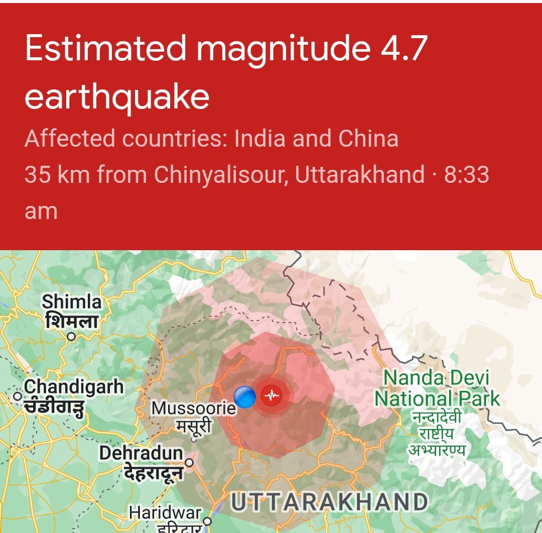 उत्तरकाशी (कीर्ति निधि सजवाण) : रविवार सुबह भूकंप के तेज झटकों से कांप उठा उत्तरकाशी । छुट्टी के दिन लोग अपने घरों में थे तभी अचानक 8: 33 पर  में  भूकंप के तीव्र झटके आ गये जिससे लोग अपने घरों से बहार निकल आये। हालांकि किसी प्रकार की जानमाल के नुक़सान की खबर नहीं । उत्तराखंड में एक बार फिर भूकंप के झटके महसूस किए गए। दहशत में लोग घरों से बाहर निकल आए। टिहरी समेत देहरादून, उत्तरकाशी और अन्य जिलों में भी यह झटके महसूस किए गए। हालांकि, इससे किसी जान माल के नुकसान की कोई सूचना नहीं है। नेशनल सेंटर फॉर सीस्मोलॉजी (NCS) के अनुसार, रिक्टर पैमाने पर भूकंप की तीव्रता 4.5 रही। सुबह 8 बजकर 33 मिनट पर आए इस भूकंप का अभिकेंद्र टिहरी जिले में रहा। भूकंप का केंद्र सतह से 5 किलोमीटर की गहराई में था। देहरादून, उत्तरकाशी समेत अन्य जिलों में भी यह भूकंप महसूस किया गया।