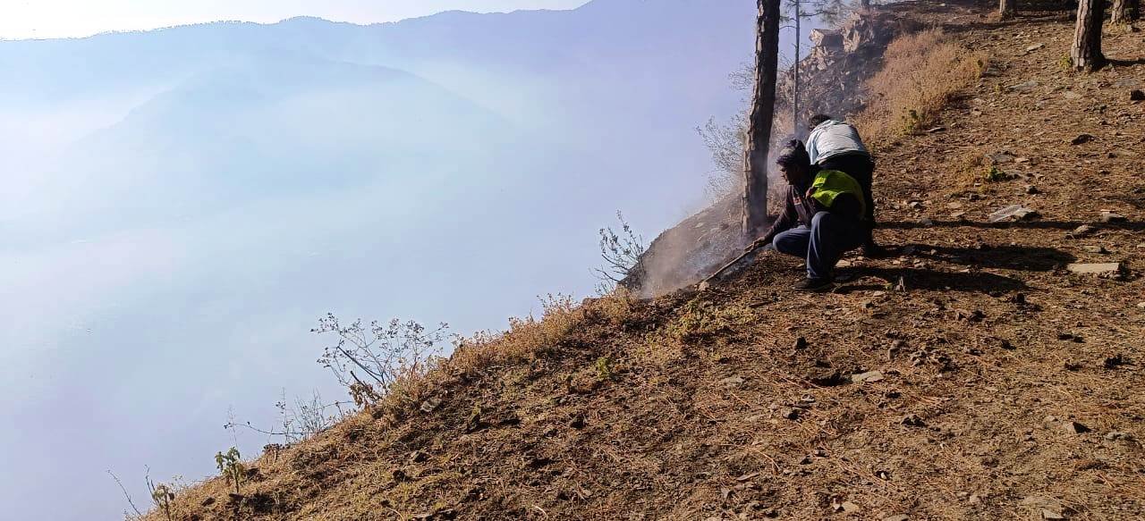 पोखरी : केदारनाथ वन प्रभाग के नागनाथ रैंज के रैंसू में चीड़ के जंगल में लगी आग, वन कर्मी जुटेे आग बुझाने में