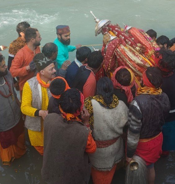 गोपेश्वर (चमोली)। सती शिरोमणि माता अनसूया तथा चंडिका माता के कर्णप्रयाग संगम पर माघ स्नान पर आस्था का सैलाब उमड़ पड़ा। वर्षों बाद दो देवडोलियों के परस्पर मिलन और माघ स्नान के चलते भावपूर्ण माहौल बना था। दरअसल मकर संक्रांति के पर्व पर दशोली ब्लॉक के खल्लागांव की सती शिरोमणि माता अनसूया तथा जिलासू की चंडिका देवी देवरा यात्रा के तहत पिंडर तथा अलकनंदा के संगम पर स्थित कर्णप्रयाग संगम पर माघ स्नान को एक साथ पहुंची। दोनों देवडोलियों के परस्पर मिलन के चलते माहौल बेहद भावपूर्ण बना रहा। माता अनसूया देवी उमा देवी मंदिर में प्रवास के पश्चात सर्वप्रथम संगम पर माघ स्नान को पहुंची। धार्मिक रीति रिवाजों के बीच देवडोली ने संगम पर डुबकी लगाई। इसके बाद देवी का श्रृंगार कार्यक्रम संपन्न हुआ और हवन आदि की धार्मिक क्रियाएं संपन्न हुई। इस दौरान संगम स्थल अनसूया देवी के जयकारों से गूंज उठा।