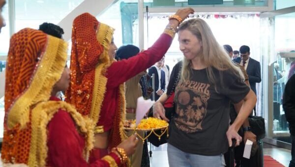 देहरादून : राज्य में आयोजित हो रहे G-20 सम्मेलन में प्रतिभाग करने आज G-20 सदस्य देशों के 62 प्रतिनिधिमंडल का जॉलीग्रांट एयरपोर्ट देहरादून पर आगमन हुआ। G-20 सम्मेलन में प्रतिभाग करने पहुंचे प्रतिनिधि मंडल/मेहमानों का जौलीग्रांट एयरपोर्ट पर तिलक, पुष्प वर्षा एवं तुलसी की माला पहना कर लोक संस्कृति से स्वागत अभिनंदन किया। राज्य की लोक संस्कृति एवं जीवन शैली से रूबरू होते हुए, प्रतिनिधि मंडल/मेहमानों एयरपोर्ट परिसर में राज्य की स्थानीय लोक संस्कृति कार्यक्रम का लुत्फ़ उठाते हुए नृत्य में शामिल हुए/ तस्वीर खिचवाई। इसके उपरांत प्रतिनिधि मंडल/मेहमानों को फिलिट की अगुवाई के साथ वाहनों के माध्यम से नरेंद्रनगर के लिए रवाना किया, मार्ग पर स्थानीय लोगों, महिलाओ, एवं विद्यालय के छात्र छात्राओं ने उत्सव की तरह फूल वर्षा एवं राष्ट्रीय ध्वज फहरा कर, हर्ष उल्लास के साथ जी 20 सम्मेलन में प्रतिभाग करने पंहुचे विदेशी मेहमानों का गर्मजोशी से स्वागत किया। इसके उपरांत विदेशी मेहमान नरेंद्र नगर स्थित मुख्य कार्यक्रम स्थल होटल वेस्ट इन पंहुचे जहां उनका परम्परागत तरीके से गर्मजोशी से स्वागत किया गया |