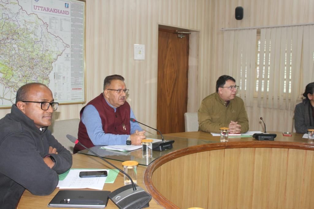 देहरादून । कृषि एवं उद्यान मंत्री गणेश जोशी ने सोमवार को सचिवालय स्थित एफआरडीसी सभागार में उद्यान विभाग के अधिकारियों के साथ एक सप्ताह पूर्व हुई बैठक में दिए गए दिशा निर्देशों की प्रगति की जानकारी ली। बैठक में सचिव वी.बी. आरसी पुरुषोत्तम, अपर सचिव रणवीर सिंह चौहान और विभागीय अधिकारी उपस्थित रहे। बैठक में कृषि एवं उद्यान मंत्री गणेश जोशी ने विभागीय अधिकारियों से पिछली समीक्षा बैठक में दिए गए दिशा निर्देश की जानकारी ली अधिकारियों द्वारा अवगत कराया गया कि शीतकालीन सीजन में फल एवं सब्जी के पौध की डिमांड में फलों की डिमांड 7,47,341 आयी है । ऐसे ही सब्जियों के पौधों की मांग 257.61 लाख आयी है। इसी प्रकार फलों में सेब की पौध की डिमांड 4,15,905 आयी है। कृषि एवं उद्यान मंत्री गणेश जोशी ने अधिकारियों को सेब पर विशेष ध्यान देने के निर्देश देते हुए अधिकारियों को जनपदवार डीएचओ से पर्सनली बात कर प्लांटेशन बढ़ाने के निर्देश दिए।