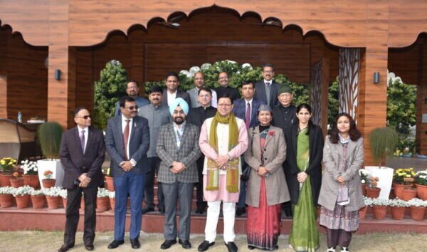 देहरादून : मुख्यमंत्री पुष्कर सिंह धामी से नववर्ष के अवसर पर मुख्यमंत्री आवास में मुख्य सचिव डॉ. एस.एस संधु के नेतृत्व में भारतीय प्रशासनिक सेवा के वरिष्ठ अधिकारियों तथा पुलिस महानिदेशक अशोक कुमार के साथ भारतीय पुलिस सेवा के अधिकारियों ने भेंट की। सभी ने मुख्यमंत्री को नववर्ष की शुभकामनायें दी तथा मुख्यमंत्री के दीर्घ जीवन की कामना की। मुख्यमंत्री पुष्कर सिंह धामी ने भी सभी को नववर्ष की बधाई दी तथा कामना की कि नववर्ष में सभी की नई ऊर्जा के साथ प्रदेश विकास के पथ पर तेजी से आगे बढ़ेगा। इस अवसर पर मुख्य सचिव डॉ. एस.एस. संधु, अपर मुख्य सचिव राधा रतूड़ी, आनंदबर्द्धन, डीजीपी अशोक कुमार सहित वरिष्ठ आईएएस एवं आईपीएस अधिकारी उपस्थित रहे।
