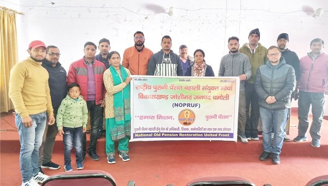 जोशीमठ : राष्ट्रीय पुरानी पेंशन बहाली संयुक्त मोर्चा विकासखण्ड जोशीमठ की महत्वपूर्ण बैठक जोशीमठ ब्लॉक सभागार में सपन्न हुई। जिसमें आगामी 18 दिसम्बर 2022 को कर्णप्रयाग में होने वाली पेंशन हुँकार रैली को लेकर चर्चा की गई। मोर्चा के प्रंतीय आईटी सेल प्रभारी अवधेश सेमवाल ने कहा कि केंद्र सरकार के लिए यह निर्णायक समय है। इसलिए कार्मिकों की पुरानी पेंशन बहाली को लेकर एक नजीर पेश करते हुए सरकार कार्मिकों की पुरानी पेंशन बहाल करे। जिस निम्मित केंद्र सरकार , राज्य सरकार का ध्यान कर्मचारियों की प्रमुख मांग पुरानी पेंशन बहाली की ओर आकर्षित करने के पेंशन हुँकार रैली कर्णप्रयाग में आयोजित की जा रही है। इस रैली का मकसद सरकार के प्रतिनिधियों और सरकार में बैठे मंत्रियों का ध्यान पुन: इस ओर ले जाना है। 2005 के बाद से इस पुरानी पेंशन योजना को बंद करके बहुत बड़ा अन्याय किया गया है। अब भूल सुधार का समय है। सरकारें सरकारी कार्मिकों की एकता और ताकत को नजरअंदाज नही कर सकती।