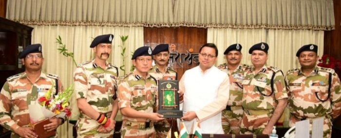 आईजी संजय गुंज्याल ने मुख्यमंत्री से आईटीबीपी के फ्रंटियर हेडक्वार्टर के लिये भू परिवर्तन की स्वीकृति तथा सीमावर्ती क्षेत्रों में भर्ती प्रक्रिया प्रारंभ किये जाने की जानकारी दी। उन्होंने कहा कि इस बार बदरीनाथ, केदारनाथ में कपाट बंद होने के बाद सुरक्षा की जिम्मेदारी आईटीबीपी को सौंपी गयी थी। उन्होंने बॉर्डर आउटपोस्ट से संबंधित प्रकरणों के निस्तारण का अनुरोध भी मुख्यमंत्री से किया तथा बताया कि उत्तराखण्ड के निवासियों का आईटीबीपी में सक्रिय योगदान रहा है। इस अवसर पर डी.आई.जी. रंजीत राणा, डी.आई.जी. मनु महाराज, डी.आई.जी. आर.के. वर्मा, डी.आई.जी. आर.के. नरवाल, सेनानी पीयूष पुष्कर, श्री अरूण रौथाण तथा पी.आर.ओ श्री राजीव नेगी भी उपस्थित थे।