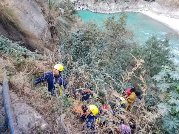 कर्णप्रयाग : जनपद चमोली के कर्णप्रयाग में वाहन दुर्घटनाग्रस्त, SDRF ने किया एक युवक को रेस्क्यू। 16 जनवरी 2023 को थाना कर्णप्रयाग द्वारा SDRF को सूचित किया गया कि कर्णप्रयाग पंच पुलिया के पास एक वाहन दुर्घटनाग्रस्त हो गया है। उक्त सूचना पर गोचर में व्यवस्थापित SDRF टीम SI कुलदीपक पाण्डेय के नेतृत्व में त्वरित रेस्क्यू हेतु मय रेस्क्यू उपकरणों के तत्काल घटनास्थल पर पहुँची। घटनास्थल पर एक वाहन अनियंत्रित होकर रोड के साइड बैरिकेडिंग से टकरा गया था और वाहन की टक्कर लगने से एक नेपाली मूल का युवक लगभग 100 मीटर गहरी खाई में गिरने से गंभीर रूप से घायल हो गया था। SDRF टीम द्वारा त्वरित कार्यवाही करते हुए खाई में उतरकर घायल युवक का प्राथमिक उपचार किया व कड़ी मशक्कत करते हुए स्ट्रैचर के माध्यम से मुख्य मार्ग तक पहुँचाकर अस्पताल पहुँचाया गया।