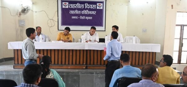 टिहरी : जिलाधिकारी टिहरी गढ़वाल डॉ. सौरभ गहरवार की अध्यक्षता में आज खण्ड विकास कार्यालय कीर्तिनगर के सभागार में तहसील दिवस आयोजित किया गया। तहसील दिवस में 52 शिकायतें/अनुरोध पत्र दर्ज किये गये, जिसमें से अधिकांश शिकायतों का मौके पर निस्तारण किया गया तथा शेष प्रकरणाों पर समय सीमा निर्धारित कर गंभीरता के साथ निस्तारण करने के निर्देश दिये गये। इस मौके पर अधिकांश शिकायतें जल संस्थान एवं जल निगम से संबंधित रही। इसके साथ ही लोनिवि, शिक्षा, पंचायत राज विभाग, सिंचाई, लघु सिंचाई, कृषि, पीएमजीएसवाई, विद्युत, समाज कल्याण, पूर्ति विभाग, उद्यान से संबंधित रही। बैठक में जिलाधिकारी ने डीएफओ, मुख्य शिक्षा अधिकारी, जिला शिक्षा अधिकारी, अधिशासी अभियन्ता पीएमजीएसवाई के अधिकारियों के अनुपस्थित रहने पर कड़ी नाराजगी व्यक्त की गई।
