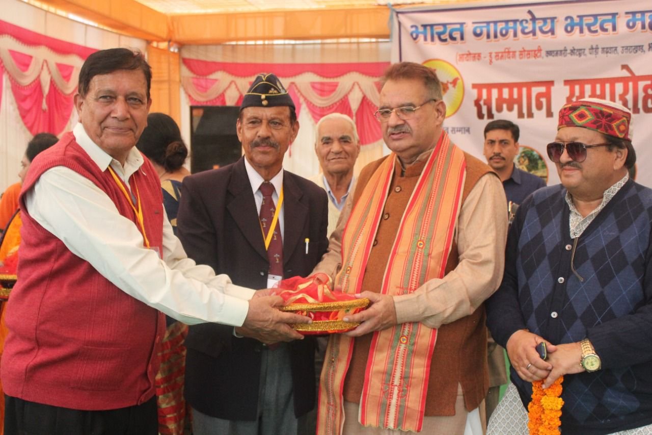 मंगलवार को कण्वनगरी स्थित महर्षि कण्व विद्या निकेतन में डू समथिंक सोसाइटी द्वारा आयोजित भारत नामधेय भरत महोत्सव में पहुंचे कृषि मंत्री ने कहा कि प्रधानमंत्री मोदी के संकल्प कि यह दशक उत्तराखण्ड का दशक होगा, को लेकर प्रदेश सरकार लगातार काम कर रही है। मंत्री ने कहा कि कण्वनगरी के निकट ही महर्षि कण्व को शंकुन्तला असहाय परिस्थिति में मिली और उन्होंने शकुन्तला का पुत्रीवत पालन-पोषण किया। बेटी बचाओ-बेटी पढ़ाओ के इसी ध्येय को ध्यान में रखते हुए देश के प्रधानमंत्री नरेन्द्र मोदी ने भी वर्ष 2014 में इस योजना को लागू किया। मंत्री ने कहा कि शकुन्तला और राजा दुष्यंत के पुत्र का नाम भरत रखा गया, जिनके नाम से हमारे देश का नाम भारत पड़ा। उन्होंने समिति के पदाधिकारियों का आभार जताया कि उन्होंने चक्रवर्ती सम्राट भरत के नाम को वैश्विक पटल पर लाने का प्रयास किया। मंत्री ने कहा कि यहां लगभग 2000 से अधिक सेवारत सैनिक, पूर्व सैनिक, अर्धसैनिक निवास करते हैं। हमारी सरकार प्रधानमंत्री मोदी के संकल्प के अनुरुप उत्तराखण्ड के पांचवें धाम के रुप में सैन्यधाम निर्माण का काम भी कर रही है। सरकार ने प्रदेश भर के शहीदों को नमन करते हुए उनकी आंगन की पवित्र माटी को कलश के माध्यम से सैन्यधाम ले जाया गया है।