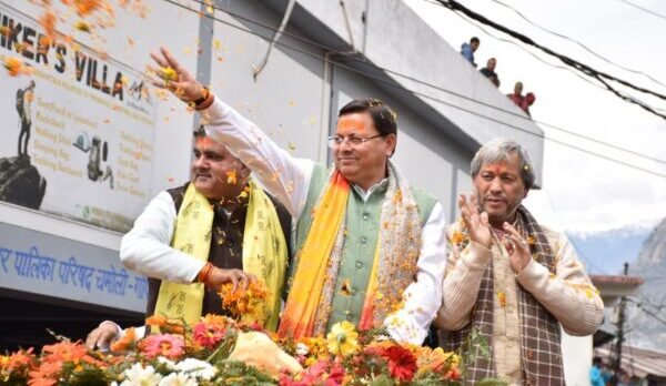 गोपेश्वर : मुख्यमंत्री पुष्कर सिंह धामी, बुधवार को एक दिवसीय चमोली दौरे पर गोपेश्वर पहुंचे। उन्होंने गोपेश्वर बस स्टेशन से पुलिस मैदान तक आयोजित विशाल रोड शो में प्रतिभाग किया। मुख्यमंत्री के रोड शो में अपार जन सैलाब उमड़ा। जगह जगह भारी संख्या में उनके चाहने वालों की भीड़ देखने को मिली। लोगों ने पुष्प वर्षा करते हुए उनका भव्य स्वागत किया। मुख्यमंत्री ने रोड शो में शामिल सभी लोगों का आभार जताया। इस अवसर पर राज्यसभा सांसद महेन्द्र भट्ट, गढवाल सांसद तीरथ सिंह रावत, विधायक अनिल नौटियाल, विधायक भूपाल राम टम्टा सहित बड़ी संख्या स्थानीय लोग मौजूद रहे।