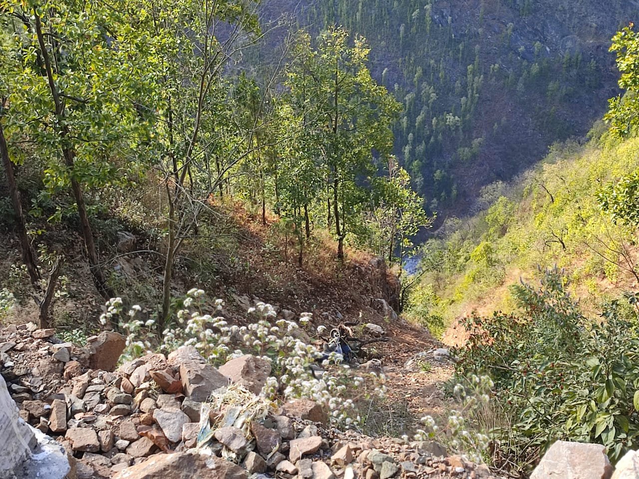 पिथौरागढ़ : खाती गांव में स्कूटी दुर्घटनाग्रस्त, SDRF ने निकाला स्कूटी सवार का शव। 22 मार्च 2023 को जिला नियंत्रण कक्ष, पिथौरागढ़ द्वारा SDRF को सूचित किया गया कि तहसील पिथौरागढ़ क्षेत्रान्तर्गत खतीगांव-तल्ली धार मोटर मार्ग पर खाती गांव, पट्टी चमाली के पास एक स्कूटी अनियंत्रित होने से लगभग 50 मीटर गहरी खाई में दुर्घटनाग्रस्त हो गयी है। उक्त सूचना पर SDRF टीम SI राम सिंह बोरा के हमराह तत्काल घटनास्थल के लिए रवाना हुईं। उक्त स्कूटी (UK 05- 4019) में एक युवक अरमान सिंह s/o राम सिंह चड्ढा, उम्र 17 वर्ष, निवासी तल्लीधार, पट्टी चमाली, पिथौरागढ़ सवार था, जिसकी घटनास्थल पर ही मृत्यु हो गयी थी। रेस्क्यू टीम द्वारा घटनास्थल पर पहुँचकर स्थानीय लोगों के साथ मिलकर उक्त युवक के शव को बाहर निकालकर बॉडी बैग के माध्यम से जिला पुलिस के सुपर्द किया गया।