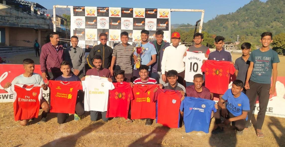 कोटद्वार । फुटबॉल संघ एवं श्री सिद्धबली शैक्षिक खेल एवं सामाजिक उत्थान समिति के सह तत्वधान में आयोजित जिला स्तरीय फुटबॉल प्रतियोगिता का सोमवार को फाइनल मुकाबला कोटद्वार यूनाइटेड और शिवपुर थापा वॉइस के मध्य खेला गया । मैच के शुरुआती क्षण के तीसरे मिनट में ही अनीश के गोल ने शिवपुर की टीम को बढ़त दिला दी , मध्यांतर से ठीक पूर्व 43 मिनट में वेदांत रावत ने गोल दागकर स्कोर बराबरी पर ला दिया । मध्यांतर के बाद दोनों ही टीमों ने आक्रामक खेल दिखाया लेकिन गोल दागने में नाकाम रही अतिरिक्त समय के पहले हाफ में हिमांशु नेगी की गोल की बदौलत कोटद्वार यूनाइटेड की टीम ने 2-1 की बढ़त बना ली, जिसके जवाब में शिवपुर थापा के नवीन ने गोल दागकर एक बार फिर स्कोर को बराबरी पर ला दिया । इस रोमांचक फाइनल मैच का निर्णय टाईब्रेकर से किया जाना था जहां कोटद्वार यूनाइटेड के खिलाड़ियों का तजुर्बा काम आया और प्रियांशु भंडारी के शानदार गोलरक्षण की बदौलत 5- 4 से मुकाबला उन्होंने अपने नाम किया । उपविजेता टीम को पूर्व सैनिक एवं समाजसेवी सुनील रावत के कर कमलों से नवीन वर्दी और ट्रॉफी प्रदान कर पुरस्कृत किया गया जबकि विजेता टीम को सेवानिवृत्त कर्नल चंद्रपाल पटवाल एवं शिक्षक सुरेंद्र रावत के कर कमलों से ट्रॉफी देकर पुरस्कृत किया गया ।