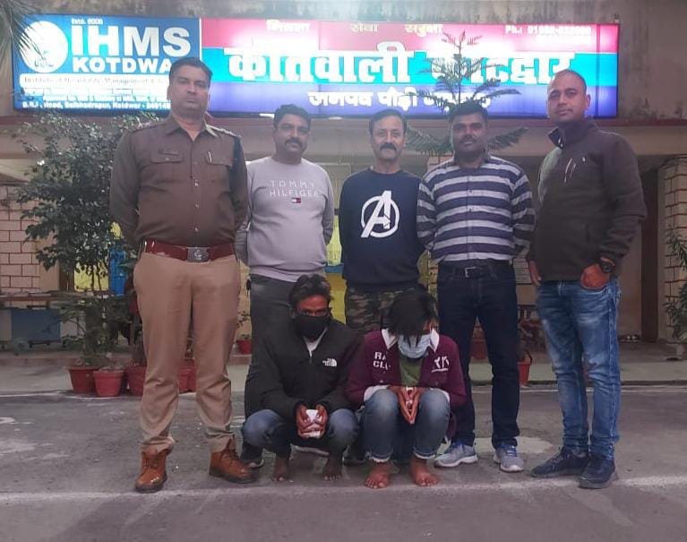 कोटद्वार/पौड़ी : वरिष्ठ पुलिस अधीक्षक पौड़ी श्वेता चौबे के निर्देशन में नशा तस्करों पर जनपद पुलिस का एक और कड़ा प्रहार । कोटद्वार पुलिस ने की ताबड़तोड़ कार्यवाही, नशा तस्करों से रूपये 1,60,000/- की 15.80 ग्राम अवैध स्मैक बरामद। मुख्यमंत्री उत्तराखंड द्वारा वर्ष-2025 तक उत्तराखण्ड को नशामुक्त (“ड्रग्स फ्री देवभूमि”) बनाये जाने हेतु चलाये जा रहे अभियान के क्रम में वरिष्ठ पुलिस अधीक्षक जनपद पौड़ी गढ़वाल श्वेता चौबे के निर्देशन में बढते नशे की प्रवृति पर अंकुश लगाने के लिये पौड़ी पुलिस द्वारा नशा तस्करों पर लगातार शिकंजा कसा जा रहा है, नशा तस्करों के विरुद्ध लगातार अभियान चलाकर उनके विरुद्ध कड़ी से कड़ी कार्यवाही की जा रही है। नशा तस्करों पर कार्यवाही करने के लिये सूचना तन्त्र को मजबूत कर युवाओं को नशे के भंवर में फसाने वालों को सलाखों के पीछे पहुंचाया जा रहा हैं। जिसके क्रम में कोटद्वार पुलिस टीम द्वारा थाना क्षेत्रान्तर्गत दौराने चैकिंग अभियुक्त नदीम एवं रोहन नेगी को बीएल रोड़ कोटद्वार के पास से 15.80 ग्राम अवैध स्मैक के साथ गिरफ्तार किया गया। जिस सम्बन्ध में अभियुक्तों के विरूद्ध थाना कोटद्वार पर NDPS ACT के तहत अभियोग पंजीकृत किया गया। अभियुक्तों ने पूछताछ में बताया कि वह उक्त स्मैक को बरेली उ0प्र0 से किसी भाभी नामक महिला से खरीदकर कोटद्वार क्षेत्र में स्कूल एवं कॉलेज के छात्र-छात्राओं के बेचते थे।