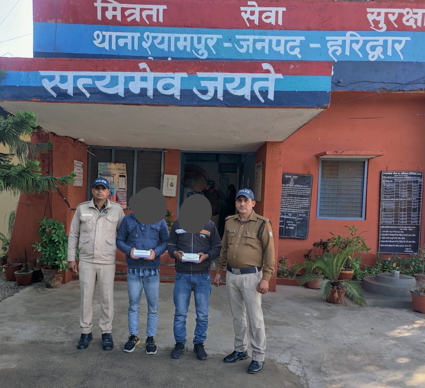 हरिद्वार : हरिद्वार पुलिस की तेजतर्रार कार्यशैली से नशा तस्करों में खौफ। पंद्रह लाख की स्मैक के साथ दो नशा तस्कर गिरफ्तार।एसएसपी हरिद्वार द्वारा सभी थाना क्षेत्र में नशे के विरुद्ध एक युद्ध की की गई है शुरूआत। ड्रग्स फ्री देवभूमि : मिशन 2025 के अंतर्गत हुई कार्यवाही। थाना श्यामपुर पुलिस तथा सीआईयू व एडीटीएफ की संयुक्त टीम द्वारा मुखबिर की सूचना पर चेकिंग के दौरान दो अभियुक्तगण से 150 ग्राम स्मैक (75/75 ग्राम) के साथ पकड़ा गया।