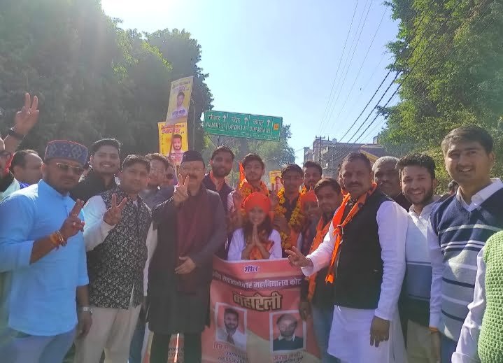 कोटद्वार । अखिल भारतीय विद्यार्थी परिषद व राष्ट्रीय छात्र संगठन ने पीजी कालेज कोटद्वार के छात्र संघ चुनाव में रैली निकालकर शक्ति प्रदर्शन किया। दोनों पार्टियों ने अपने अपने समर्थकों के लिए मत मांगे । दोनों पार्टियों की रैली करीब एक घंटे बाद पीजी कालेज पहुंची। यहां ढोल-नगाड़ों के साथ प्रत्याशियों का स्वागत किया गया। इसके बाद सभी प्रत्याशियों ने पीजी कालेज मैदान में छात्र-छात्राओं को संबोधित किया और अपनी अपनी प्राथमिकताएं गिनाईं।
