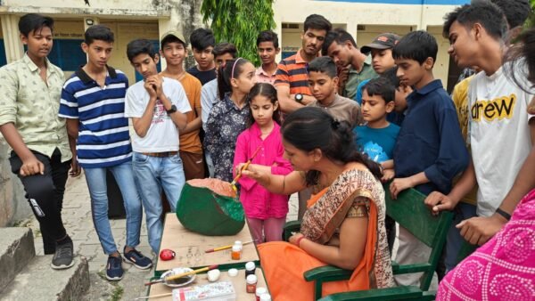 कोटद्वार । राजकीय आदर्श इंटर कालेज कोटद्वार में चल रहे समर कैंप में बच्चो को पत्थर में की जाने वाली अलग अलग आर्ट के बारे में शिवपुर निवासी मेघना मैंदोला ने बच्चो को समझाया । छोटे छोटे पत्थर में किस तरीके से रंग करके उनको खूबसूरत बनाया जाए इस बारे में मेघना मैंदौला ने बच्चो को प्रैक्टिकल करके बताया । इसके बाद रॉक आर्ट, बड़े पत्थर में आर्ट व पॉट आर्ट, छोटे बड़े घड़े में आर्ट की विभिन्न बारीकियां सिखाई गई । रंग के प्रकार और ब्रश के साइज को समझने के बाद स्कूल के परिसर में पड़े एक पत्थर को लेकर उसमे खूबसूरत कलाकृति को उकेर कर विशेषज्ञ मेघना मैंदोला ने बच्चो को स्वयं को अभिव्यक्त करने के इस विधा का ज्ञान दिया । समर कैंप के संचालक संतोष सिंह नेगी ने मेघना मैंदोला का आभार व्यक्त करते हुए कहा कि यह बच्चो के लिए बड़ा अच्छा मौका है कि वो अपने कौशल का विकास करने के साथ साथ स्वयं को कला के माध्यम से अभिव्यक्त कर सकते है। कार्यक्रम में शिक्षक अनूप नेगी, शिक्षिका सुनीता शाह, भारत सिंह, रजनी देवी ने भी अपने विचार रखे। बच्चों ने रॉक आर्ट के प्रति उत्साह दिखाया एवं एक और दिन आने का अनुरोध किया जिसे विषय विशेषज्ञ मेघना मैंदोला ने स्वीकार किया । कार्यक्रम में लगभग 30 बच्चे प्रतिभाग कर रहे है।
