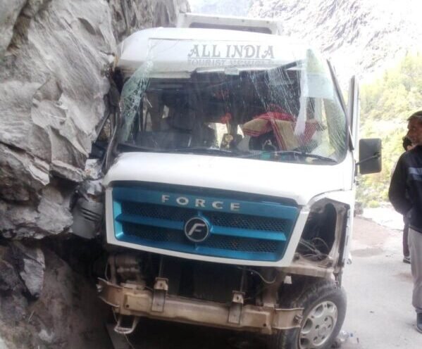बदरीनाथ हाइवे पर पहाड़ी से टक्कराया वाहन, चालक हुआ घायल, बदरीनाथ धाम के दर्शन कर लौट रहा था यात्री वाहन