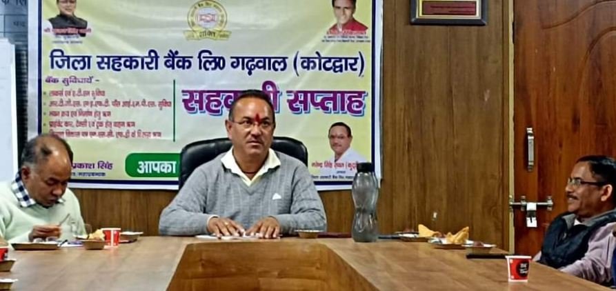 जिला सहकारी बैंक पौड़ी के मुख्यालय भवन कोटद्वार के साथ ही जनपद की सभी शाखाओं में सहकारिता सप्ताह मनाया गया है। बैंक के अध्यक्ष नरेंद्र सिंह रावत ने बताया कि सप्ताह आयोजन के दौरान सप्ताह भर सहकारिता को लेकर जन जागरूकता अभियान चलाया गया। सभी समितियों में सहकारिता गोष्ठियों का आयोजन हुआ जिसमें सहकारिता के लक्ष्यों को शत प्रतिशत सफल कराए जाने पर चर्चा हुई। आजीविका संवर्द्धन के प्रयास भी कार्यक्रम की प्राथमिकता में रहे। इस दौरान सदस्यता अभियान चलाकर कई लोगों को सहकारिता अभियान से जोड़ा गया। कई गांवों में सदस्यता शिविर आयोजित कर नए खाते खुले साथ ही निष्क्रिय हुई समितियों को फिर से सक्रिय की गई। स्वरोजगारियों का ऋण भी वितरित किए। सहकारिता से जुड़े हर व्यक्ति ने अपने दायित्वों को बेहद जिम्मेदारी से निभाने का संकल्प दोहराया।
