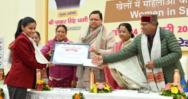 देहरादून : मुख्यमंत्री पुष्कर सिंह धामी ने मंगलवार को राष्ट्रीय बालिका दिवस के अवसर पर परेड ग्राउण्ड देहरादून स्थित नवीन बहुद्देशीय हॉल में ‘महिलाओं की खेल में सहभागिता’ विषय पर आयोजित सेमिनार में प्रतिभाग किया। इस अवसर पर उन्होंने विभिन्न खेलों में सराहनीय प्रदर्शन करने वाले महिला खिलाड़ियों को सम्मानित भी किया।