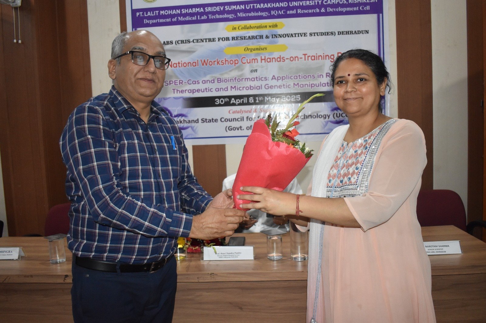विशिष्ट अतिथि एम्स ऋषिकेश की बायोकेमेस्ट्री विभाग की वरिष्ठ प्रोफेसर डॉ मनीषा नैथानी ने कहा कि इस कार्यशाला का विषय छात्रों के लिए बहुत महत्वपूर्ण है, अनुवांशिकी दोषो में अनको बीमारियां आती है जिनको चिकित्सा पद्धति से दूर किया जा सकता है, इस लिए क्रिस्पर तकनीकी बहुत महत्वपूर्ण है।
