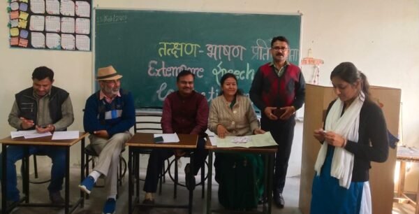 कोटद्वार । राजकीय स्नातकोत्तर महाविद्यालय कोटद्वार के बीएड विभाग में बीएड प्रथम वर्ष, सत्र-(2022-24) के छात्र छात्राओं हेतु गुरुवार को एक तत्क्षण भाषण प्रतियोगिता का आयोजन किया गया। जिसमें बीएड के 45 छात्र-छात्राओं ने प्रतिभाग किया। विद्यार्थियों को विभिन्न विषयों पर बोलने हेतु 2 मिनट का समय दिया गया। कार्यक्रम बीएड विभागाध्यक्ष प्रोफेसर रमेश चौहान के दिशा निर्देशन में हुआ। इस अवधि में विभाग के सभी गणमान्य प्राध्यापक प्रोफेसर अमित कुमार जायसवाल, डॉ सुशील बहुगुणा, डॉक्टर हितेंद्र बिश्नोई उपस्थित रहे। प्रोफ़ेसर जायसवाल ने छात्रों को अच्छा प्रदर्शन करने के संबंध में अपना वक्तव्य दिया। प्रोफेसर चौहान ने सभी प्रतिभागियों का उत्साहवर्द्धन करते हुए उन्हें आगामी गतिविधियों में प्रतिभाग करने हेतु प्रेरित किया । डॉ सुशील बहुगुणा एवं डॉक्टर हितेंद्र विश्नोई ने सभी विजेता प्रतिभागियों को बधाई दी। इस कार्यक्रम का संयोजन डॉक्टर सुषमा थलेड़ी ने किया। प्रतियोगिता में प्रथम स्थान पर उज्ज्वल, द्वितीय स्थान पर शाहिल नेगी एवं तृतीय स्थान पर प्राची और पूजा भदोला रही ।