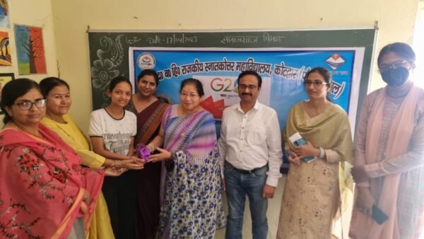 कोटद्वार : राजकीय स्नातकोत्तर महाविद्यालय में समाजशास्त्र विभाग और IQAC के संयुक्त तत्वावधान में G-20 पर व्याख्यानमाला एवं क्विज का किया गया आयोजन। डॉ०पी०द०ब०हि० राजकीय स्नातकोत्तर महाविद्यालय, कोटद्वार में आज G-20 पर व्याख्यानमाला का आयोजन किया गया। समाजशास्त्र विभाग और आई क्यू ए सी के संयुक्त तत्वावधान में G-20 पर व्याख्यानमाला का आयोजन किया गया। व्याख्यानमाला का विषय G20 महिला सशक्तिकरण और लैंगिक समानता में विश्व को राह दिखाता भारत था। महाविद्यालय की प्राचार्य प्रो. जानकी पंवार ने कार्यक्रम का शुभारंभ किया। प्राचार्य प्रो0 जानकी पंवार ने बताया की यह बड़े गर्व का विषय है की इस बार भारत जी-20 की अध्यक्षता कर रहा है। आपने महिला सशक्तिकरण और लैंगिक समानता के संबंध में छात्र छात्राओं को जागरूक किया। आपने सभी छात्र-छात्राओं को बताया की G-20 में भारत की भूमिका और अन्य देशों की भारत के संबंध में प्रतिक्रिया को विस्तार से बताया। साथ ही भारत की कूटनीतिक संरचना के संबंध में विस्तार से जानकारी दी।