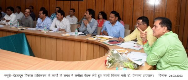 देहरादून : शहरी विकास मंत्री डॉ. प्रेमचंद अग्रवाल ने विधान सभा स्थित कार्यालय कक्ष में मसूरी-देहरादून विकास प्राधिकरण के कार्यों के संबंध में समीक्षा बैठक की। शहरी विकास मंत्री डॉ. प्रेमचंद अग्रवाल ने एमडीडीए के अंतर्गत हो रहे निर्माण कार्यों की जानकारी लेते हुए कहा कि अधिकारियों को आवासीय नक्शे 15 दिन में तथा व्यावसायिक नक्शे 30 दिन में पास करने होते हैं। उन्होंने कहा कि जिन नक्शों में आपत्तियां पायी जाती हैं उन्हें एक बार में निस्तारित किया जाए। उन्होंने कहा कि यदि नक्शे अधिक मात्रा में पास होंगे तो राज्य सरकार को इसका फायदा राजस्व प्राप्ति में दिखेगा। उन्होंने प्राधिकरण के अधिकारियों को अस्वीकार किये गये नक्शों की अपने स्तर पर समीक्षा करने के निर्देश दिये।