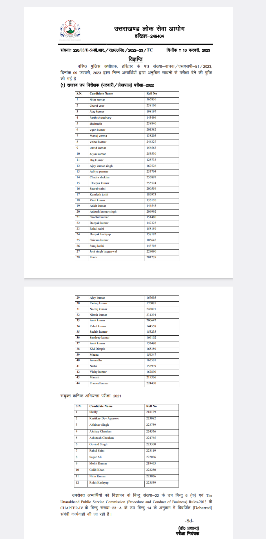 हरिद्वार : UKPSC ने पटवारी/लेखपाल भर्ती में नकल करने वाले अभ्यर्थियों की लिस्ट जारी कर दी है। राज्य में ऐसा पहली बार हुआ है कि किसी परीक्षा में नकल करने वालों के नाम सार्वजनिक किए गए हैं। बेरोजगार संघ ने भी सरकार से नकलचियों की लिस्ट जारी करने की मांग की थी। बेरोजगारों की मांग को देखते हुए उत्तराखंड लोक सेवा आयोग (UKPSC) ने नामों की सूची को सार्वजनिक करने का फैसला लिया है।