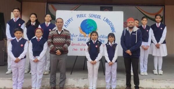 लैंसडौन । आर्मी पब्लिक स्कूल लैंसडाउन में विगत 18 अप्रैल से 20 अप्रैल तक वर्ल्ड अर्थ डे बड़े धूमधाम से मनाया गया। कक्षा एक से लेकर बारहवीं तक के विद्यार्थियों के लिए विभिन्न अंतर सदनीय प्रतियोगिताओं का आयोजन किया गया। जिसमें कक्षा एक से लेकर पांचवीं तक के छात्र छात्राओं के लिए ड्राइंग प्रतियोगिता का आयोजन किया गया जिसका विषय आई लव माई अर्थ था ।इस प्रतियोगिता में नेहरू सदन की सानवी कौशल प्रथम, सुभाष सदन की आद्या रस्तोगी तथा शिवाजी सदन की आलिया रावत द्वितीय स्थान और टैगोर सदन के स्वप्निल तृतीय स्थान पर रहे। वही कक्षा छः से लेकर आठवीं तक के छात्र छात्राओं के लिए भाषण प्रतियोगिता का आयोजन किया गया। जिसका विषय वर्ल्ड अर्थ डे था। जिसमें नेहरु सदन की अक्षिता रौतेला को प्रथम स्थान, शिवाजी सदन की अनुष्का काला को द्वितीय स्थान व सुभाष सदन की परिधि गुसाई को तृतीय स्थान प्राप्त हुआ।